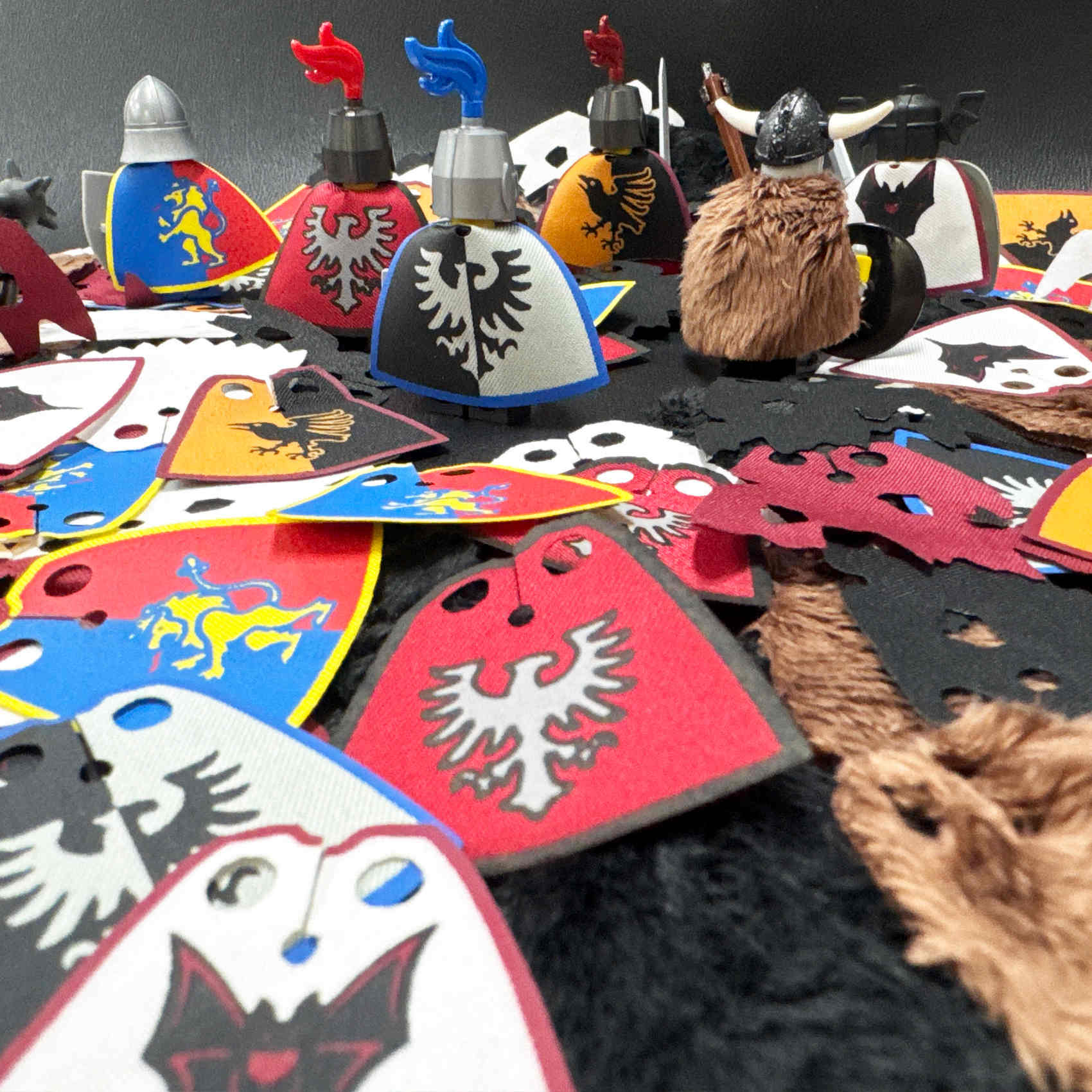 You can choose the type you like or get a mixed pack. Designs vary from fur coats, battle worn capes to coat of arms designs. Perfect for knights, battle scenes and castle and fantasy themed MOCs.
